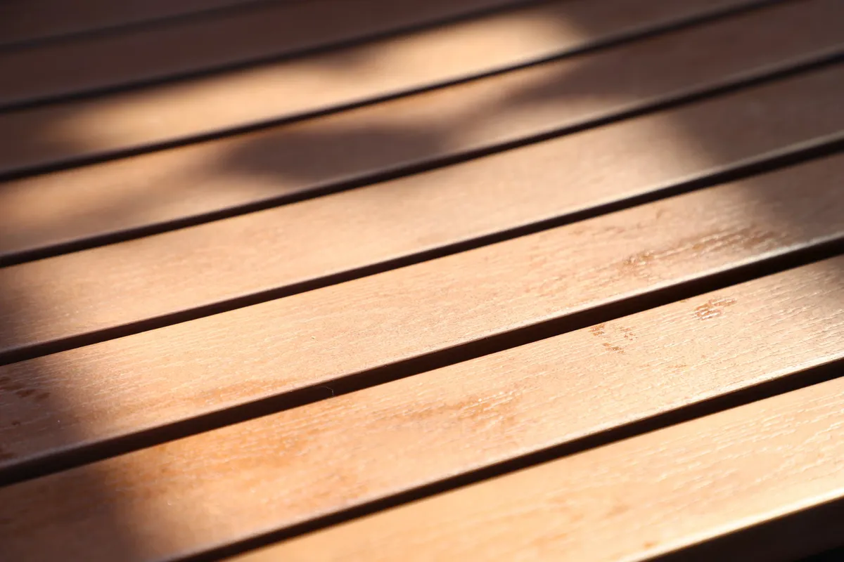 - Low-maintenance composite decking in gray tones
